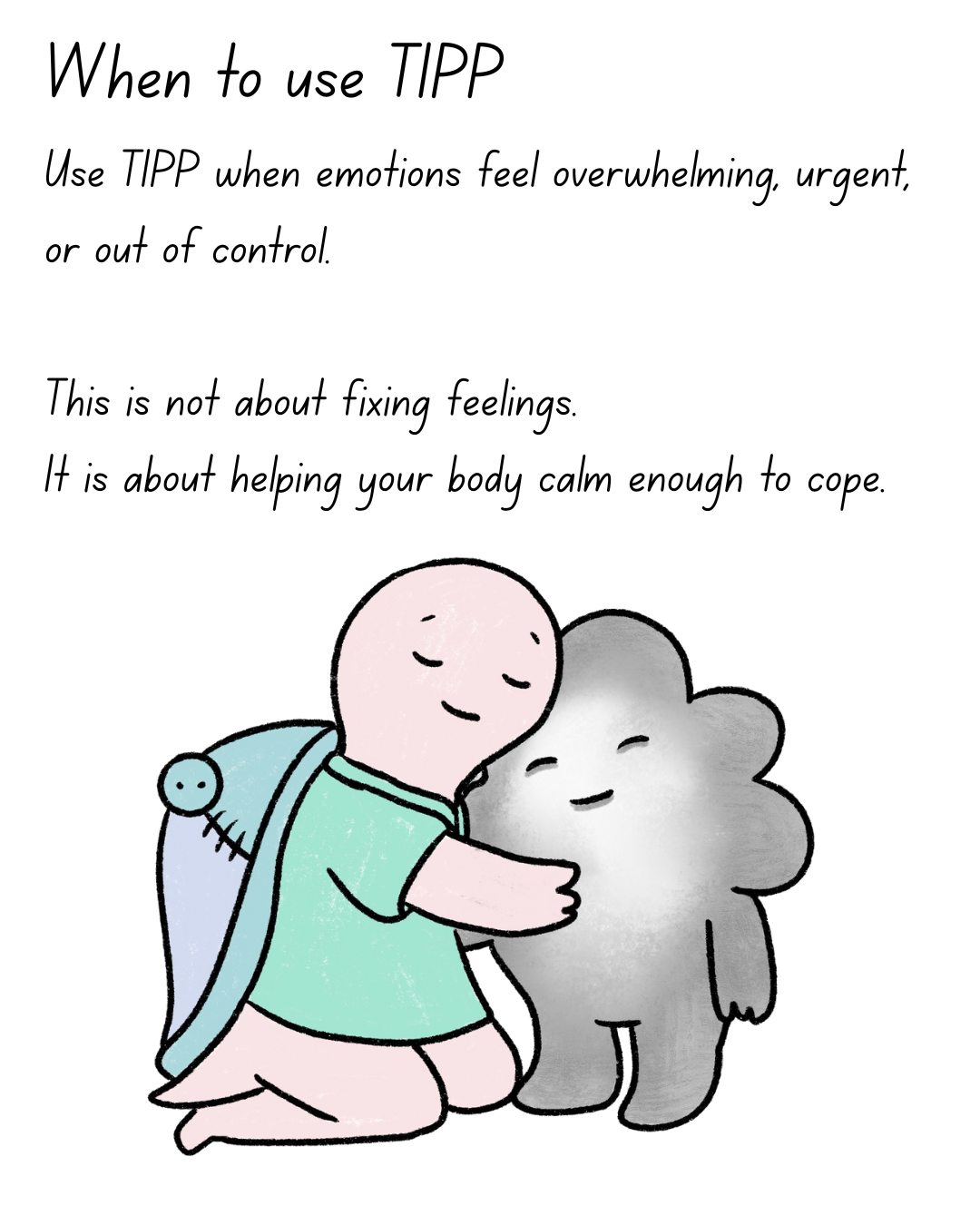 TIPP is a skill from DBT to be used when in crisis or experiencing overwhelming emotions. This free printable resource can be used in therapy sessions or as a reminder when you are experiencing distress.